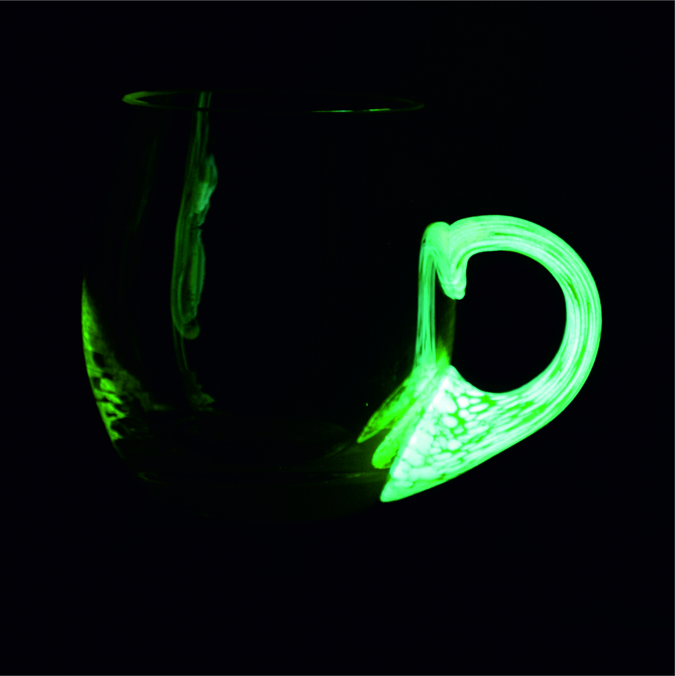 Jedinečný půllitr z uranového skla s fosforeskujícím uchem, který neseženete nikde jinde.